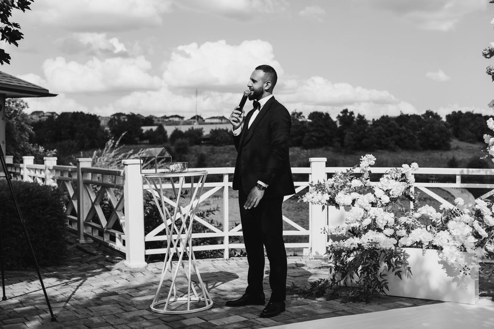 На втором курсе института он берёт микрофон и проводит первую свадьбу.